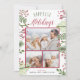 Festive holiday photo card features painted watercolor berries, leaves and branches, surrounding three of your favourite photos in a collage layout. "Happiest Holidays" appears at the top in red and green hand lettered block and script typography. Personalize with your custom greeting and names at the bottom.