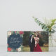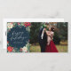 Celebrate the season with a customized holiday photo card! This design features a moody dark navy and holiday colour scheme with watercolor florals, berries and branches.