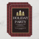 A striking holiday party invitation with a buffalo red and black plaid background and three golden, snow-capped, trees. (<a href="https://www.vecteezy.com/free-vector/christmas-holidays">Christmas Holidays Vectors by Vecteezy</a>). <br/><br/>The card is easy to customize with your wording, font, font colour, paper shape options and choice of six paper types.<br/><br/>Not exactly what you're looking for? All our products can be custom designed to meet your needs at no extra charge.<br/><br/>Simply contact us at askcottonlamb@gmail.com.<br/><br/>Coordinating products available: Just ask us!"