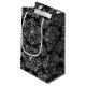 This Christmas holiday gift bag is shown in a black and white snowflakes print design.