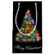 This Holiday gift bag is shown with a festive Christmas tree print.