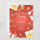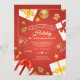 A festive gift exchange party invitation with a red background, packages with ribbons and holiday elements. (<a href="https://www.freepik.com/free-photos-vectors/brochure">Brochure vector created by freepik - www.freepik.com</a>). <br/><br/>The card is easy to customize with your wording, font, font colour, paper shape options and choice of six paper types.<br/><br/>Not exactly what you're looking for? All our products can be custom designed to meet your needs at no extra charge.<br/><br/>Simply contact us at heartfelthelper@gmail.com.<br/><br/>Coordinating products available: Just ask us!