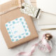 This holiday gift tag sticker is shown with a holiday blue snowflakes print with text To: and From:.