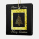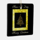 This ornate, graphic greeting card design, is of a Digitalized, scrolled, Christmas tree, in gilded gold, displayed upon a black, background, and framed in a simulated, embossed, pattern of gold-with Christmas Holiday greetings, in scripted gold, font.