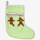 "My leg hurts" - "What?" Funny gingerbread men in parody, spoof, to the bunny rabbits that says "My butt hurts". Cute Christmas Gingerbread men graphic design. With a green background that can be changed to any colours.