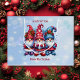 Personalized Christmas gift bag. Cute watercolor whimsical winter gnomes in red and blue. Wishing you a festive Christmas topped with joy!