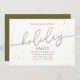 This design features a Christmas gold calligraphy script party invitation with a simple minimalist modern elegant layout, a scannable QR code for your party event website social media Facebook event page details and information, perfect for any holiday party or a festive celebration, a trendy stylish golden typography, a gold gradient font text lettering, a stylish elegance gold glitter, great for celebrate family friends parties, a simplistic contemporary Christmas basic, a stylish Christmas holiday invite, a horizontal landscape invitation template