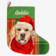 Holiday Golden Retriever and Plaid with Dog's Name Large Christmas Stocking
