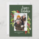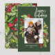 Happy holiday green Christmas photo holiday card. Beautiful watercolour painted foliage and modern script text. Part of a collection.