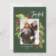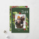 Holiday green red foliage traditional rustic 1 photo holiday card. Beautiful watercolour painted foliage and modern script text. Part of a collection.