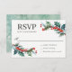 Beautiful watercolor holly branches adorn this RSVP card with a winter holiday theme. The reverse side has an abstract watercolor texture that resembles snowfall.