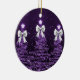 Elegant Merry Christmas / Happy Holidays Festive Ornament, Purple Trees with bows.