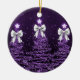 Holiday Greeting Purple Christmas Trees Silver Ceramic Ornament