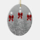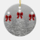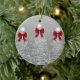 Holiday Greetings Silver Christmas Trees Red Bows Ceramic Ornament