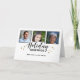 This modern, minimalist Christmas card brings a personal touch to holiday greetings from one family to friends, relatives, and acquaintances. The design features three photo spots to share favourite memories from the year, all framed in a clean white layout with black text and elegant gold-effect stars. "Holiday Greetings" graces the front, with space to add your family name for a unique, personalized touch. Inside, a warm, heartfelt message extends Christmas cheer and best wishes for the New Year, making this card a beautiful way to celebrate the season with everyone who matters most.