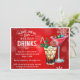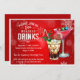 Beautiful and colourful holiday happy hour invitation with decadent holiday drinks in front of a lovely red and snowflake background with easy to update text.