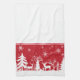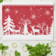 Holiday kitchen towel is shown in a festive snowy deer in forest print design.