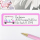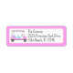 A fun addition to your holiday mailings. This unique return address label features a fun pink golf cart festooned with bright retro holiday lights and personalized with your initial monogram. Your name and address are displayed in a casual modern font.