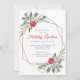 Elegant Christmas holiday luncheon invitation with watercolor bouquets of seasonal florals and greenery on a copper gold geometric frame. Easily personalize the type of event (luncheon, brunch, dinner, tea party, etc.), as well as other event details in modern red and green script and typography.
