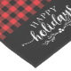 Holiday table runner is shown with a red buffalo plaid.