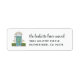 Share your new address this holiday season with these charming Christmas themed return address labels, featuring a sketched illustration of a turquoise aqua door flanked by green bushes and adorned with a green wreath. Personalize with your custom announcement (shown with "the [names] have moved") and address change information.