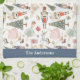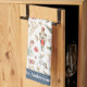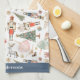 Personalized Christmas Nutcracker Kitchen Towel features nutcracker ballet characters and symbols on white background with custom name or family name of holiday greeting personalization.