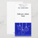 A pretty design in royal blue featuring white and blue holiday ornaments. Little snowflakes in the background. Customize with your picture and info. as desired.