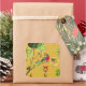 Holiday sticker shown with a festive partridge in a pear tree print.