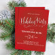 This design features a Holiday party invitation, with a Holiday Party calligraphy script typography design, with a red watercolor, festive, elegant, corporate, classic traditional, a minimalist style.
