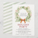 Holiday Party Christmas Watercolor Wreath Red Bow Invitation