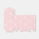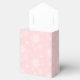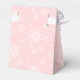 This holiday party favour box is shown in a festive Christmas holiday blush pink and white snowflakes print.