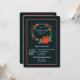 A festive holiday party invitation with a black background and a Christmas wreath with cones, berries, stars and a poinsettia flower. (<a href="https://www.freepik.com/free-vector/beautiful-christmas-wreath-with-cones_1444426.htm">Designed by Freepik</a>). <br/><br/>The card is easy to customize with your wording, font and font colour.<br/><br/>Not exactly what you're looking for? All our products can be custom designed to meet your needs at no extra charge.<br/><br/>Simply contact us at askcottonlamb@gmail.com.<br/><br/>Coordinating products available: Just ask us!