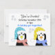 A fun holiday invitation featuring delightful penguins decked in hats and scarfs. Soft blue snowflakes accent this. Customize with all of your information as desired. A fun holiday party invite.