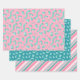Our Patterned Christmas Wrapping Paper - Festive Stripes in Trendy Pink and Teal. Get into the holiday spirit with our festive, trendy wrapping paper! This Winter Holiday Modern Gift Wrapping Paper set includes three matching sheets of paper in unique and eye-catching designs. Each sheet captures the joy of the season with design patterns of cozy gloves, hat, scarf, and socks. The 'falala' adorning the paper provides a whimsical touch, making each of your gifts a piece of art even before they're opened. The chic pink and teal colour palette brings a fresh twist to traditional holiday colours, ideal for those seeking a modern take on the Christmas spirit. Whether it's for the big day or an early white elephant party, this wrapping paper will make your presents sparkle under the Christmas tree.
