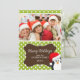 Customizable photo cards featuring an adorable penguin wearing a Santa Hat on a light green with polka dots background.