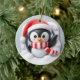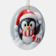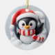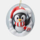 Holiday Penguin Waving and Bursting Out Ceramic Ornament