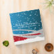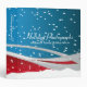 Custom photo binder with red and blue background with snow white ribbons and snow! The perfect binder for Holiday or cherished Christmas Album! Holiday Photographs text, Anderson Family Holiday Album text on front cover and spine can be edited! Add your family name! Both the front text and spine text can be edited so you can add that personal touch! Add more text if needed! Create a personalized custom picture notebook/binder for yourself or as a gift!