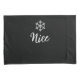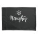 This holiday pillowcase set is shown with a festive holiday Christmas naughty and nice snowflake print.