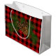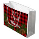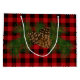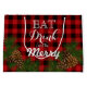 Holiday party humour - eat drink merry - red and black plaid with pine-cone accent