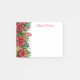 Post-it-Notes is shown in white with a festive holiday print of poinsettias and happy holidays text.
