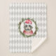 This unique holiday design features an adorable watercolor illustration of a woodland raccoon dressed in his Christmas hat and sweater surrounded by a pine wreath. A pastel grey-beige harlequin pattern forms the background of this delightful design, sure to brighten up your home for the holidays. These sherpa blankets are warm and cuddly and make a nice winter gift for the entire family, even your pets! They are available in three sizes: small, medium and large.