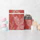 This holidays design features an elegant floral pattern of holly, mistletoe and fir in white on a festive red background. Perfect for Christmas gift wrapping.