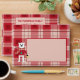 A cute red plaid envelope featuring a polar bear family . Perfect to add to a gift or to stand on it own .