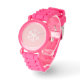 Kids Watch shown with a pink face and pink glitter strap with a holiday snowflake print.