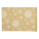 Pillowcase is shown in gold with a festive holiday Christmas snowflakes print.