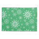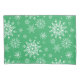 Pillowcase is shown in green with a festive holiday Christmas snowflakes print.
