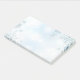 Post it notes shown with a holiday winter snowflakes print.