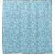 This shower curtain is shown in a blue colour with a festive holiday Christmas snowflakes print.