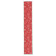 Table runner to accent your table decor is shown in a festive Christmas holiday snowflakes print in red and white.