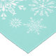 This table runner is shown with a festive Christmas holiday snowflakes print.